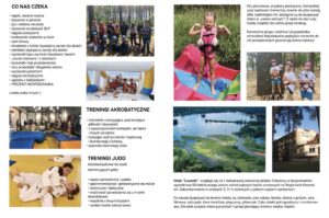 W czasie obozu chętni mogą uczestniczyć w zajęciach z: judo, piłki nożnej, gimnastyki i tańca. Wykwalifikowana kadra dba o odpowiedni podział na grupy, uwzględniając wiek i poziom zaawansowania. Dodatkowo dzieci mają możliwość skorzystania z wielu innych atrakcji tj.: rowerki wodne i kajaki, zajęcia gimnastyczne, akrobatyczne, rozciągające, zabawy terenowe, podchody, budowanie szałasów, chowany, flagi, paintball, łuki, bitwy wodne czy trampoliny.